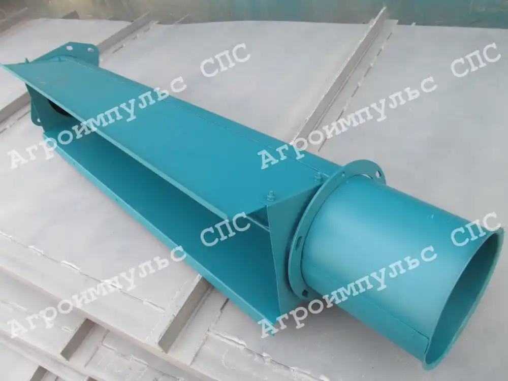 Выполнен в форме желоба без крышки с выходом в форме трубы, имеющей фланец для монтажа к нижней секции.